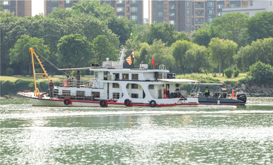 近日,东莞市石龙广九铁路桥水域上演了一场紧张而有序的水上搜救“双盲”应急演练。此次演练由东莞市水上搜救分中心与石龙镇人民政府联合组织,海事、航道、渔政、公安等多部门及船艇、拖轮、清污、蓝天、华威救援队等水上应急力量共同参与。
