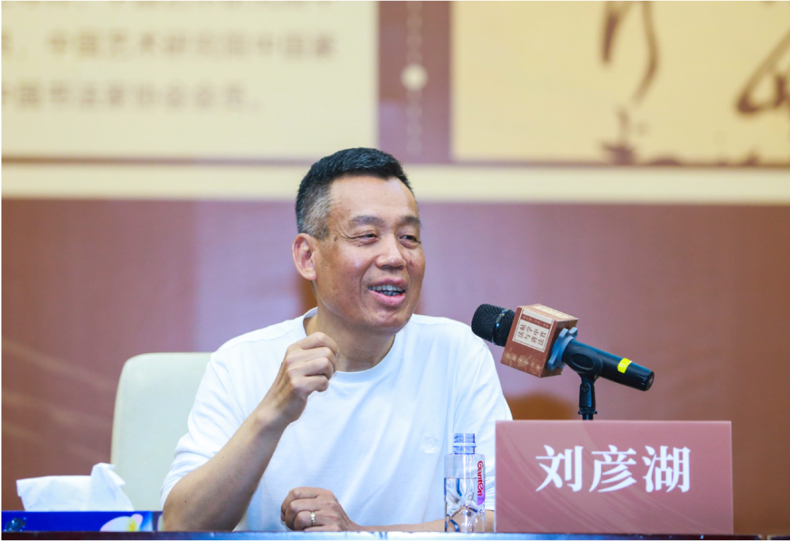 刘彦湖的出场自带学术锋芒。这位身兼创作、教育、研究三栖的书法家,毫不避讳地抛出核心命题:晋唐书法绝非博物馆里的标本,而是活着的基因库。他以手术刀般的剖析,拆解晋代手札中“动态平衡”的密码——那些被后世奉为神品的《兰亭序》《伯远帖》,实则是纸张革命与士人精神碰撞的产物。“王羲之的‘一笔书’不是美学选择,而是书写工具迭代的必然。”这种将技术史与艺术史捆绑的解读,瞬间解构了玄学化的传统叙事。对于唐代法帖,他更用“法典化”一词定性:颜真卿的雄浑、欧阳询的险绝,本质是帝国文化工程对书写秩序的暴力重构。当投影仪打出《祭侄文稿》与《九成宫》的笔触对比时,观众才惊觉——唐代书家早将“势能转化”的物理法则,玩成了艺术哲学。