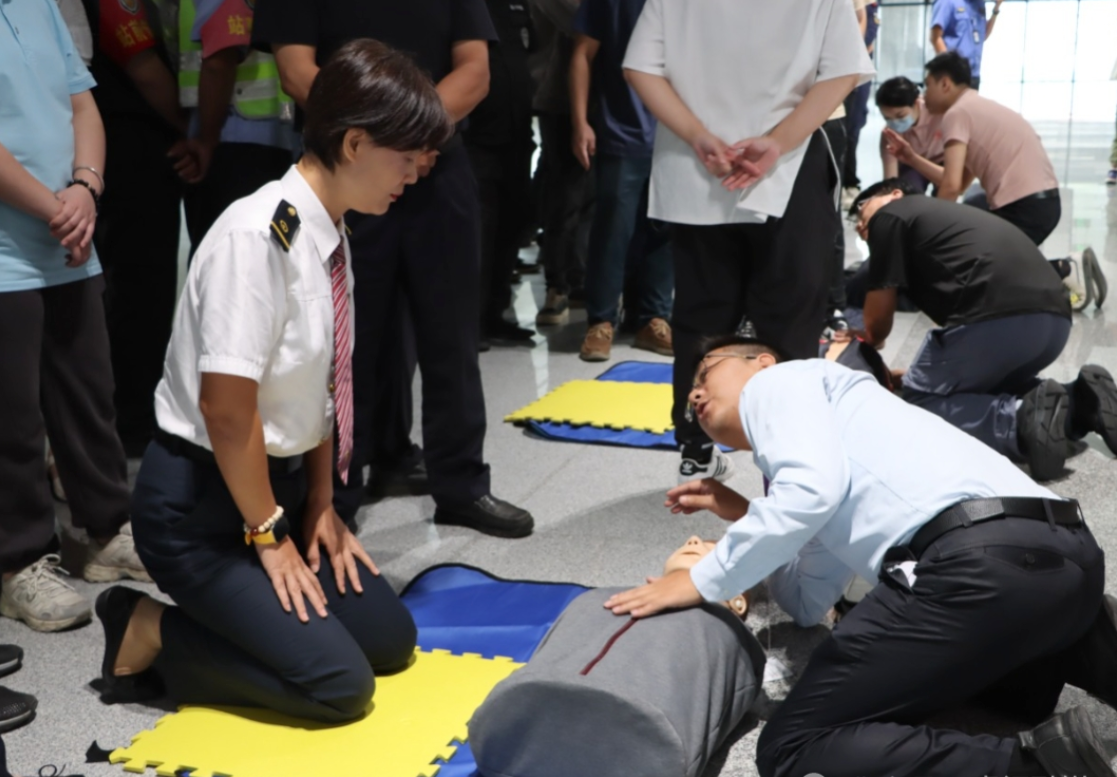 此次培训活动在虎门高铁站交通换乘中心三楼举行,重点学习了心肺复苏急救技能。参训人员首先认真聆听了专业急救人员带来的急救知识讲座,了解了海姆立克法、拍背法等急救方法。随后,在实操环节中,他们分组利用人体模型进行心肺复苏术技能实操,在指导员的指导下,沉稳、准确地实施急救步骤,以应对日常工作生活中可能遇到的紧急情况。