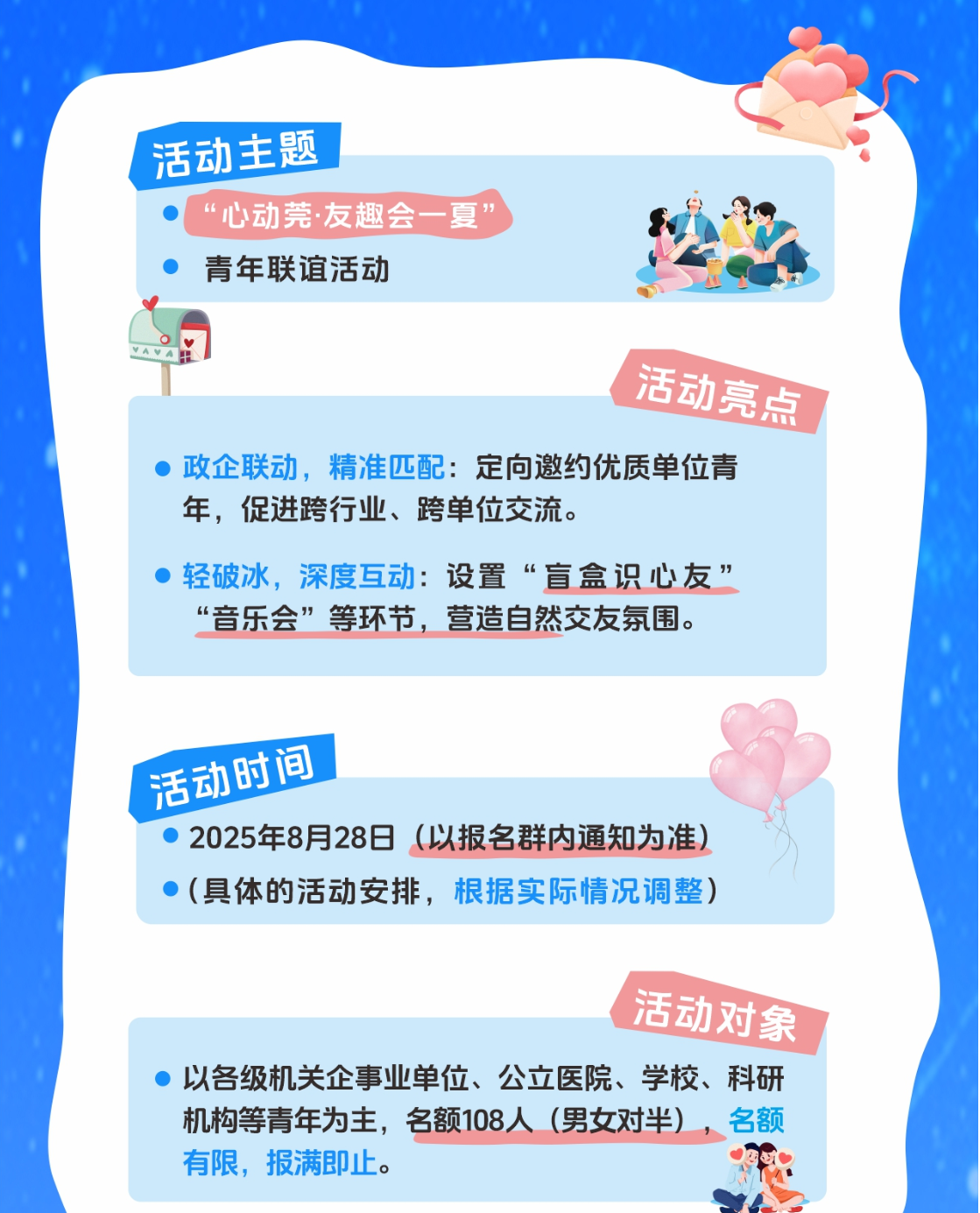 本次活动得到市总工会、市妇联等8家单位指导支持,联动市人民医院、市妇幼保健院提供应急医疗服务。钻石世家特别赞助的九龙含珠饰品、王老吉提供的消暑饮品、欧舒丹定制香氛礼盒等贴心物资,让参与者在享受社交乐趣的同时感受城市温度。据主办方透露,首轮500张门票已于开放预约2小时内抢罄,反映出青年群体对高品质社交平台的迫切需求。