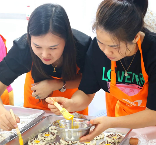 在授课的过程中,老师采取理论与实操相结合的方式进行,把学员分为六组现场教学,用通俗易懂的语言为学员一边示范一边详细讲解了家庭点心的制作流程、配料、操作步骤以及技巧要点等,让大家掌握了怎么和面、揉面、擀面、捏造型、蒸煮等基本要领,手把手传授了点心制作的技巧。