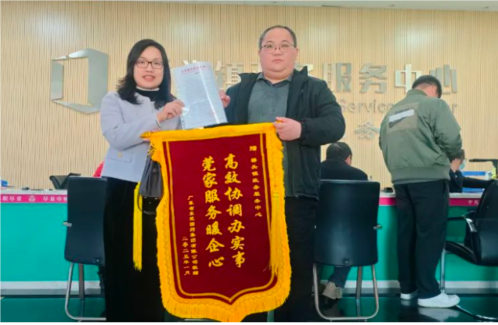 在持续深化“放管服”改革,优化营商环境的背景下,东莞市桥头镇政务服务中心以企业需求为导向,以“高效办成一件事”为目标,不断创新服务模式,提升服务质量。2025年1月13日,东莞国药集团有限公司向该中心赠送了一面写有“高效协同办实事,莞家服务暖企心”的锦旗和感谢信,对中心的全程帮办代办服务表达了高度赞誉及诚挚感谢。