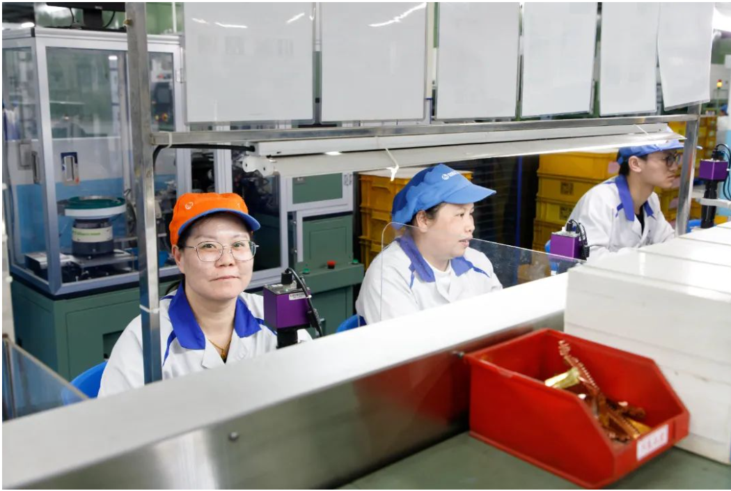 随着机器的轰鸣声缓缓响起,镜头聚焦在生产线上。万宝至马达(东莞)有限公司的员工们熟练地操作着设备,迅速而精准地拿起零件,进行组装、调试。他们的每一个动作都流畅自然,眼神专注而坚定,严格把控每一个细节。管理员与巡查员各司其职,确保生产工作有序开展。