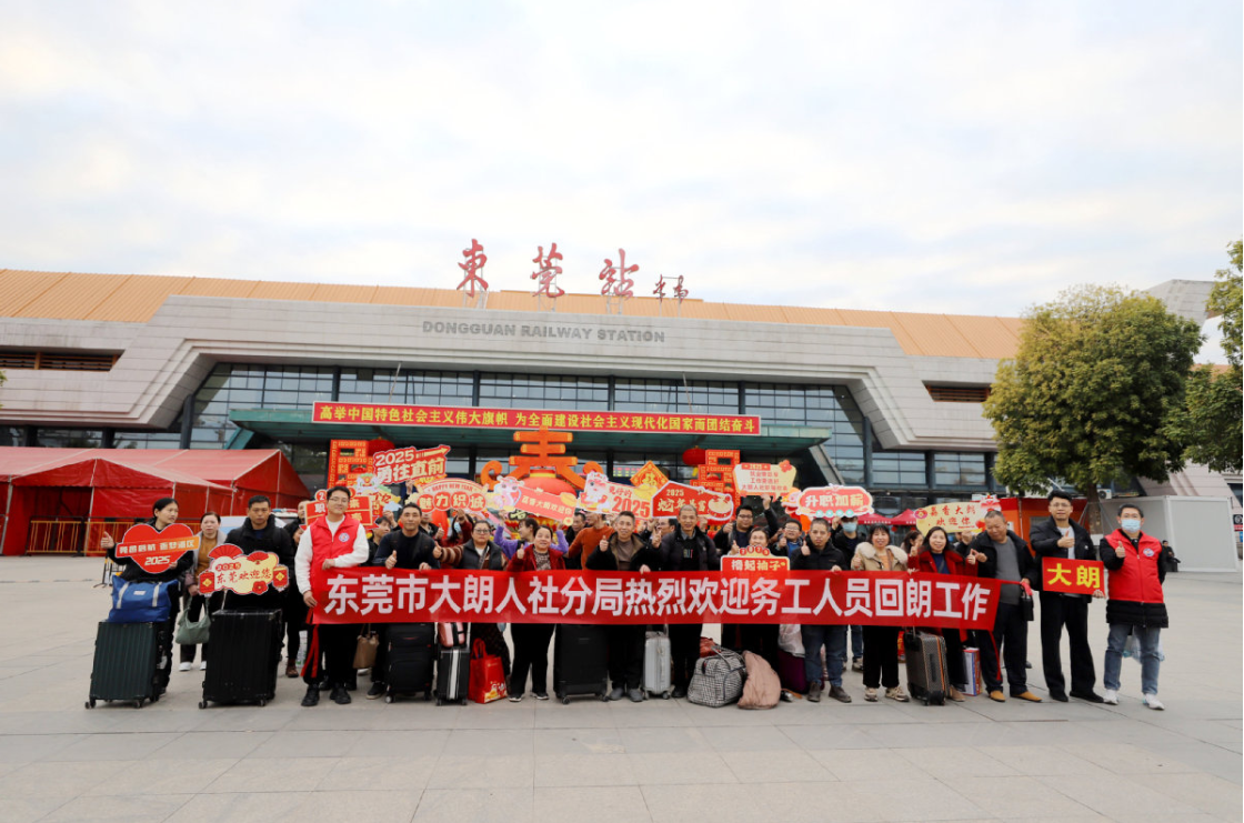 在广安南站,42名广安籍务工人员搭乘返岗务工专列——K488次列车返回大朗。在专列发车仪式上,大朗人社分局负责人带领工作组人员,为川籍务工人员送上返岗爱心礼包,并派发《2025年东莞市企业春节后用工需求信息》。抵达东莞站后,大朗人社分局安排的专车早已等候在站前广场,并拉起“热烈欢迎务工人员回朗工作”横幅迎接返岗务工人员,现场发放东莞就业创业政策宣传单,安排专车将务工人员直接送至大朗。大朗镇毛织产业发达,被称为“世界毛织之都”,有20余万名从事毛织行业的工人,其中四川广安前锋人超过8万名,约占前锋区户籍人口总数的26%。近年来,两地通过岗位信息互通、技能培训联办、权益保障共护等举措,不断完善两地就业服务协作,为务工人员提供了更多的就业机会和更好的就业保障。