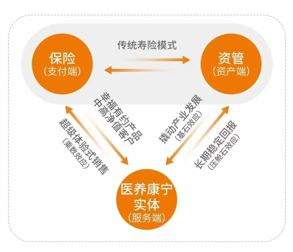 泰康新寿险模式下,把医养康宁实体与服务作为新主业,把碎片化的医疗、养老服务融合成全生命周期医养康宁“无缝对接”的服务体系。泰康前瞻性布局医养健康领域,一方面发挥保险资金作为“耐心资本”“长期资本”的作用,推动医养康宁基础设施建设,不断丰富养老金融供给;另一方面,整合碎片化的服务,形成全生命周期的医养康宁服务体系。