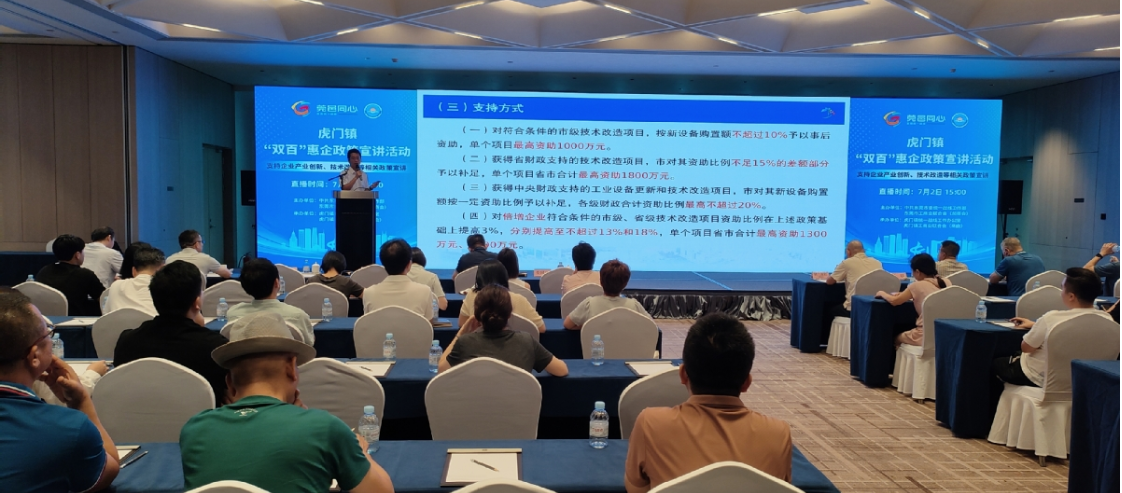 会议厅冷气嘶嘶作响,虎门税务分局副局长刘海明解开衬衫领口,激光笔停在"研发费用加计扣除"条款上。"比如你们投入300万研发,税前能多扣150万!"台下制衣厂老板陈伯荣的笔尖猛划破纸张——7月2日这场惠企宣讲会,正将政策红利具象为财务账本上的真金白银。当市科技局代表抛出"揭榜挂帅项目最高支持500万"时,会议室后排的直播摄像机红灯闪烁,东莞+平台在线人数瞬时飙升三千。