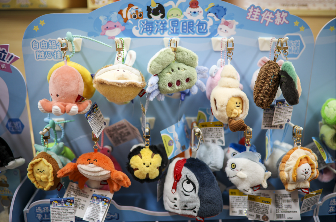 在茶山镇奇骏玩具车间,缝纫机针头正以每分钟1500次的速度跳跃,流水线上滚动着《浪浪山小妖怪》小猪妖包挂的绒布配件。这款因电影票房破6亿而断货的爆款周边,仅是这家企业"潮玩制造力"的缩影。从2023年全红婵带火的"美炸了人鱼"玩偶,到今年售罄的"神仙助我"盲袋,奇骏玩具凭借占总量95%的包挂类产品,在东莞潮玩产业版图上刻下鲜明坐标。