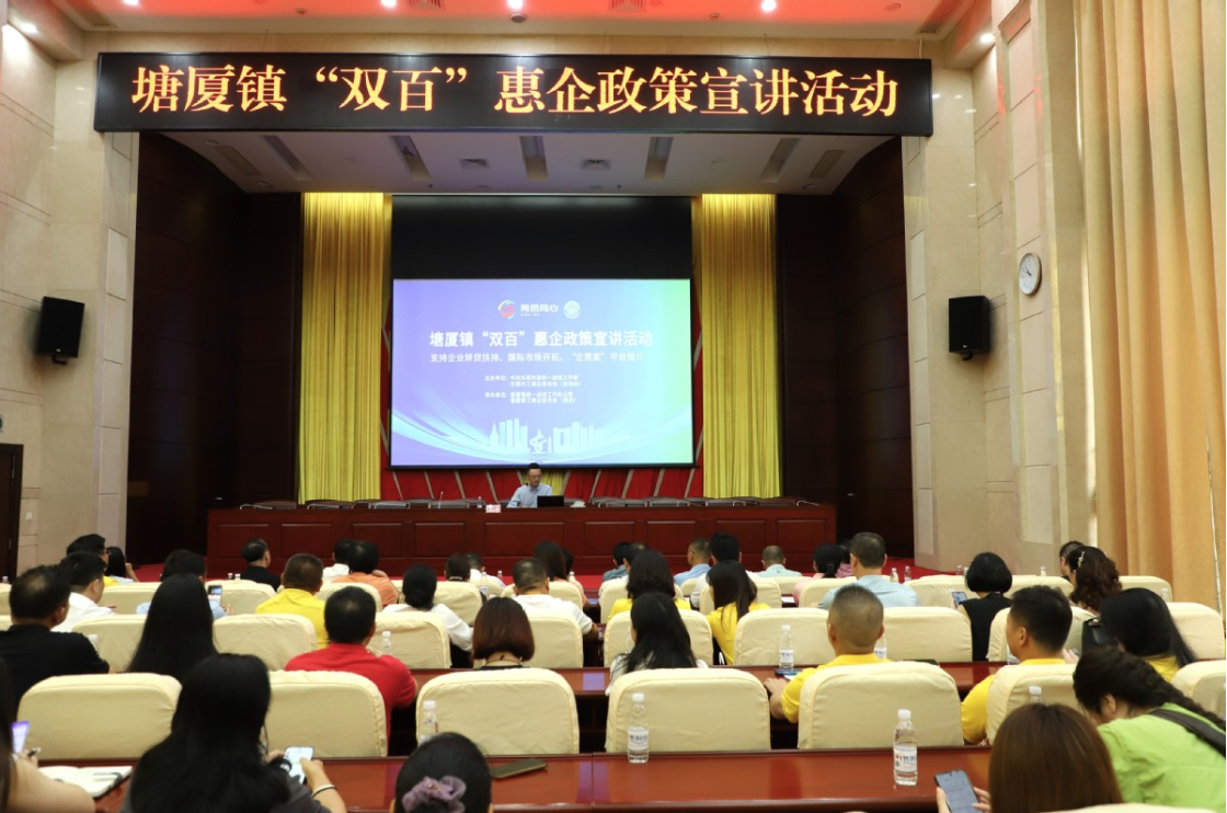 8月21日,塘厦镇“双百”惠企政策宣讲会在镇人民政府成功举行。此次活动由东莞市委统战部、市工商联(总商会)主办,塘厦镇统战办、镇工商联(商会)承办,聚焦企业关注的转贷资金、国际市场开拓、政务服务平台等热点领域,通过权威解读与案例分享,助力企业精准对接政策红利。塘厦镇相关领导、各商(协)会代表及企业家共百余人参加了此次会议。
