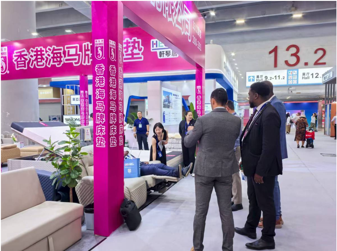 此外,部分参展企业还在现场斩获了订单。家电领域的珍葆电器接洽了32位意向客户,意向成交金额约430万元;恒科能源的换电式电池因适配多场景需求,现场售出约2680件,意向金额近400万元;威兵海棉家具(海马家居)接待了50余位国内外客户,现场达成20笔订单,其海外适配产品还吸引了非洲采购商团的关注,开启跨境合作探讨;太粮米业通过现场试吃、礼盒展示,收获了3个意向订单的同时售出约300包大米,实现了“批量+零售”双突破;黛妃服饰则对接了广州十三行、真维斯等采购商,进入了选品确认、报价对接阶段。