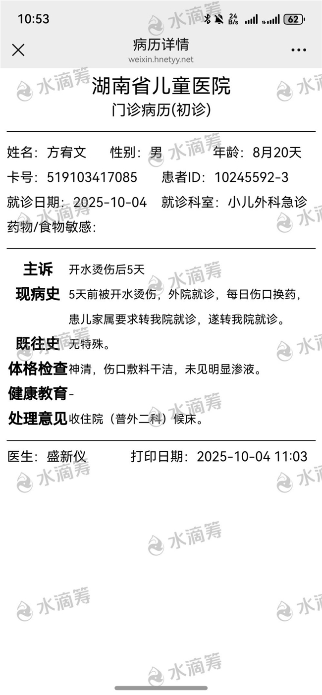 我叫方浔海,此刻怀着无比沉重和焦急的心情,为我八个月大的儿子写下这封求助信。9月29日,那是我这辈子都不愿回想却又无法忘却的一天。早上,孩子刚刚睡醒在玩耍,孩子奶奶为了冲奶粉将水烧开了。小小的他对这个世界充满了好奇,眼睛滴溜溜地看着床边的东西,伸手去够的时候,不小心弄翻了开水壶。滚烫的开水瞬间浇在了他稚嫩的身体上,孩子撕心裂肺地哭着,那哭声仿佛一把把利刃,割在我的心上。