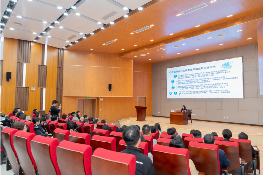 在专题宣讲环节,东莞公证处公证员邱欣以“公证助企高质量发展”为题,系统梳理公证服务在企业经营中的多维应用场景。她指出,企业在日常合同管理、融资贷款、知识产权保护乃至跨境投资等环节,均可能面临法律风险,而公证作为一种法定证明机制,能够在证据固定、履约保障、争议预防等方面发挥不可替代的作用。她通过多个真实案例,展示了企业如何借助公证手段实现风险前置管理,尤其在涉外业务中,公证文件常成为国际认可的法律凭证,有效降低跨境交易成本与不确定性。