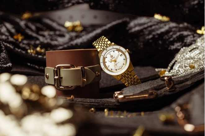 当代女性不设限,岁月更迭,“她”依旧勇敢无畏,Captain Cook库克船长系列设计师合作款腕表“金虹库克”助力女性恣意成长。八颗宝石熠熠多彩,装饰于表盘之上,突显果敢女性力量;金色金属时标和数字呼应抛光黄金色PVD涂层的表壳与表圈,白色高科技陶瓷衬片于表盘一脉相承;极具原创特色的秒针则以心跳脉动的形象呈现,于流转间带来无限生机;结合前卫风格和实用主义,“金虹库克”陪伴酷飒“女神”奔跑于春日间。