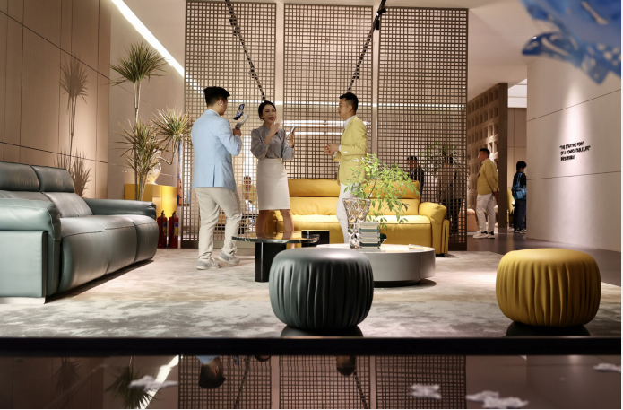 自1989年起,壹加壹亲情家居便深耕于家居行业,凭借厚皮沙发的精湛工艺和原创设计,迅速在市场上崭露头角。在展会现场,壹加壹亲情家居的展品无一不体现出其匠心独运的设计理念和高超的制作工艺。