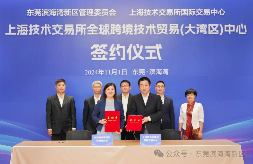 11月1日,东莞滨海湾新区与上海技术交易所国际交易中心(简称:上技国际)正式签约设立上海技术交易所全球跨境技术贸易(大湾区)中心,旨在打造大湾区跨境技术贸易枢纽。同时,上海临港科技创业(大湾区)中心也一同落地,以构建高质量的科创服务生态圈。