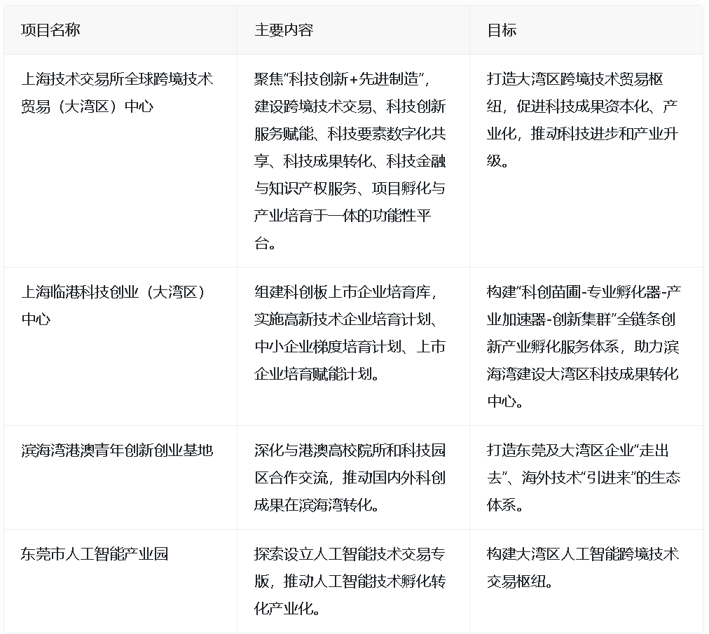 上海技术交易所全球跨境技术贸易(大湾区)中心的成立,将聚焦“科技创新+先进制造”,建设集跨境技术交易、科技创新服务赋能、科技要素数字化共享、科技成果转化、科技金融与知识产权服务、项目孵化与产业培育于一体的跨境技术交易功能性平台。此外,项目将重点围绕智能终端、人工智能等特色产业,探索设立人工智能技术交易专版,推动人工智能技术孵化转化产业化,构建大湾区人工智能跨境技术交易枢纽。