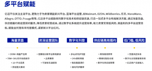 亿迈多平台赋能服务的推出,标志着跨境电商行业进入了一个新的发展阶段。亿迈凭借其创新的服务理念和技术优势,为卖家提供了一个低门槛、低风险的多平台经营策略。这一策略不仅简化了复杂的跨平台运营流程,还通过精准的市场分析和高效的供应链管理,帮助卖家在全球市场中快速捕捉商机,实现可持续发展。