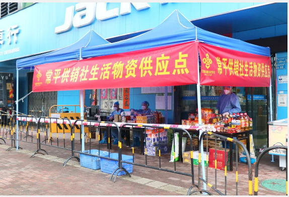 根据疫情防控工作要求,常平部分区域被划定为临时管控区。在落实落细各项疫情防控措施的同时,常平切实抓好居民生活物资供给保障,通过整合临时管控区内生活超市、设置生活物资供应点、以打包外卖方式销售食品等创新物资供应方式,满足群众日常生活所需。