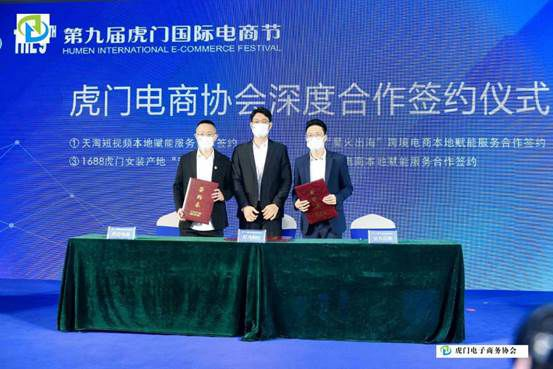 在第九届虎门国际电商节的开幕式上,与会的领导嘉宾共同为基地进行揭牌;期间,虎门镇经济发展局主要负责人对外发布了2022虎门电商技能大赛赛制,虎门电商协会与阿里1688、淘宝天猫(东莞)商家运营中心、国内和跨境服饰电商经验共享平台"星火出海"、抖音电商产业带服务商东莞云企星网络科技等平台的负责人,签署了战略合作协议。