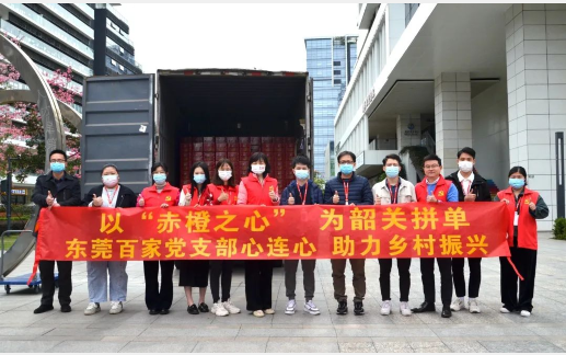 “今年,我们又开始为韶关拼单了!”盟大党支部书记沈双在东莞百家党支部的微信群发起爱心接龙,号召东莞爱心企业、党支部及党员个人通过“以买代帮”的方式,助果农增收。“每箱脐橙5公斤重,通过大货车集中运输到南城天安数码城,落地后由各党支部自行领取。”