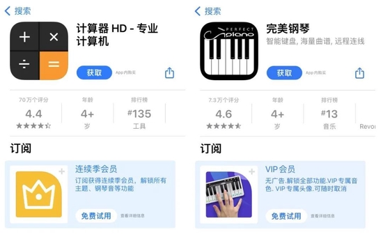 这些软件依靠苹果独特的Apple pay账单支付功能,先是提供免费下载,吸引用户下载;然后再给予用户3天的试用期;等到三天之后,没有卸载软件的用户就会面临每周/每月,数十元到数百元不等的订阅费。