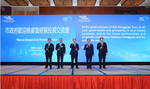 3月20日,外国驻港领团和商界参访团欢迎晚宴暨经贸投资交流会举行,外交部驻港特派员公署特派员刘光源,东莞市委书记肖亚非,市委副书记、市长吕成蹊,副市长李延振,香港特区政府商务及经济发展局局长丘应桦,香港特区政府政制及内地事务局副局长胡健民,以及各国驻港总领事,各国在港商会、企业和金融机构负责人,东莞市有关职能部门、商会企业代表等近200人参加活动。市委常委、副市长邢文聚主持活动。