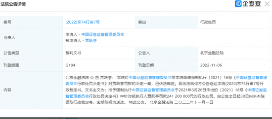 具体来看,中国证监会申请的执行标的金额共计2.41亿元,这笔款项与证监会在2021年宣布的拟对贾跃亭的行政处罚金额相符。