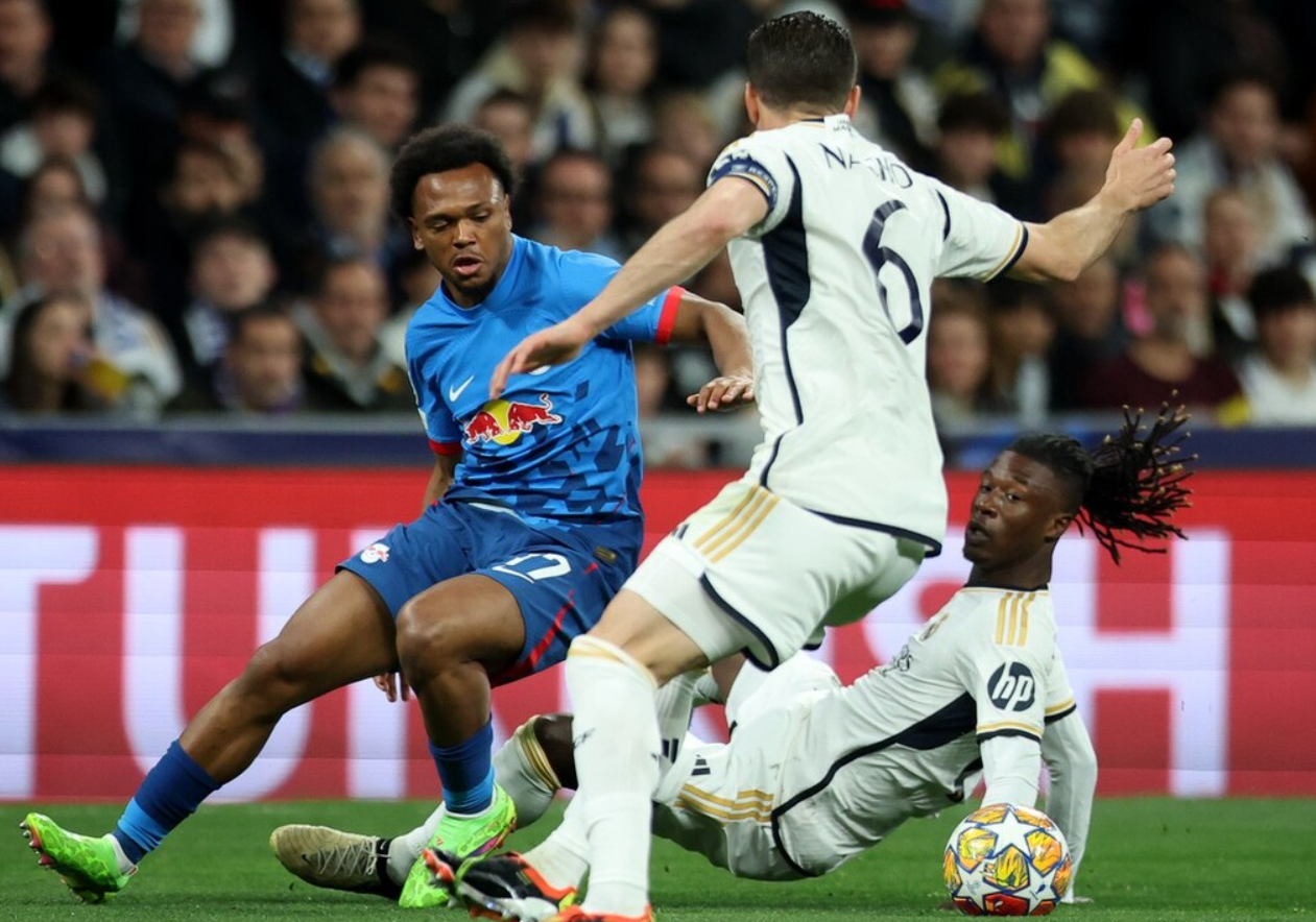 第25分钟,巴尔韦德在前场右侧送出斜塞球,贝林厄姆前插,小角度推射,但被防守球员挡出了底线。第38分钟,哈维-西蒙斯在禁区外尝试一脚远射,但很可惜被挡出了底线。2分钟后,哈维-西蒙斯在禁区左侧兜射远角,门将把球扑了出去。随后,奥蓬达在禁区内胸部停球,随即起脚抽射近角,还是踢偏了。奥蓬达的射术真是太辣眼了。半场结束,皇马0-0莱比锡。