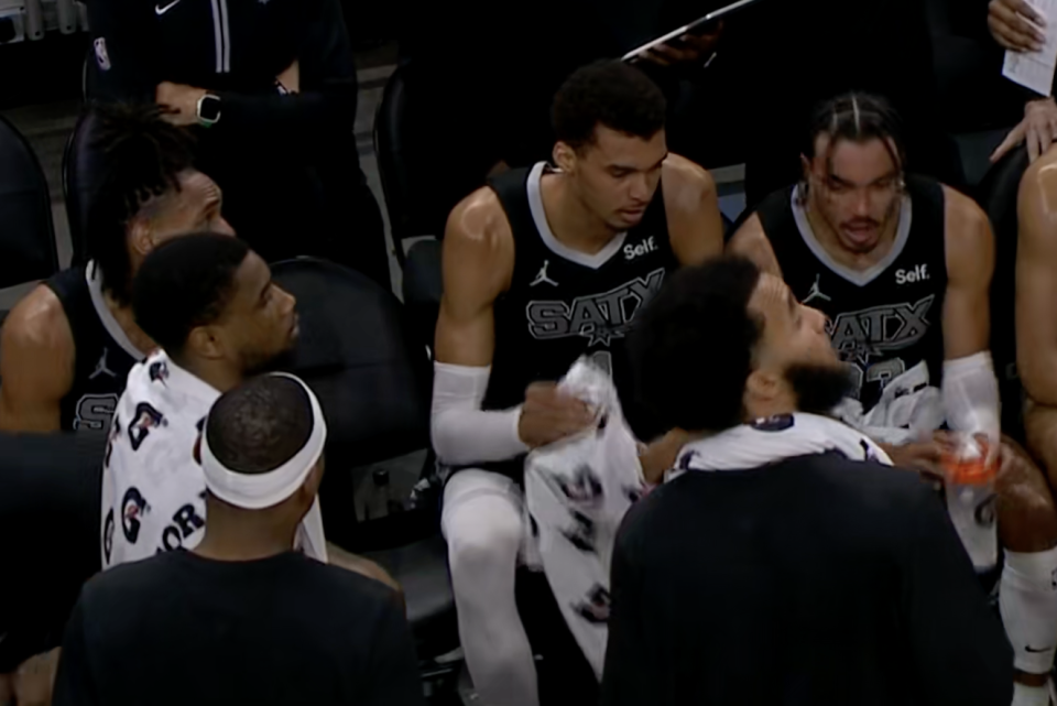 加时赛,文班亚马继续站出来,上篮得手,帮助马刺追到114-115。还剩38.2秒,文班亚马空接暴扣,随后钉板大帽施罗德,却被吹了干扰球,裁判回看录像进行了改判,认定是好帽,最终,马刺完成了逆转。