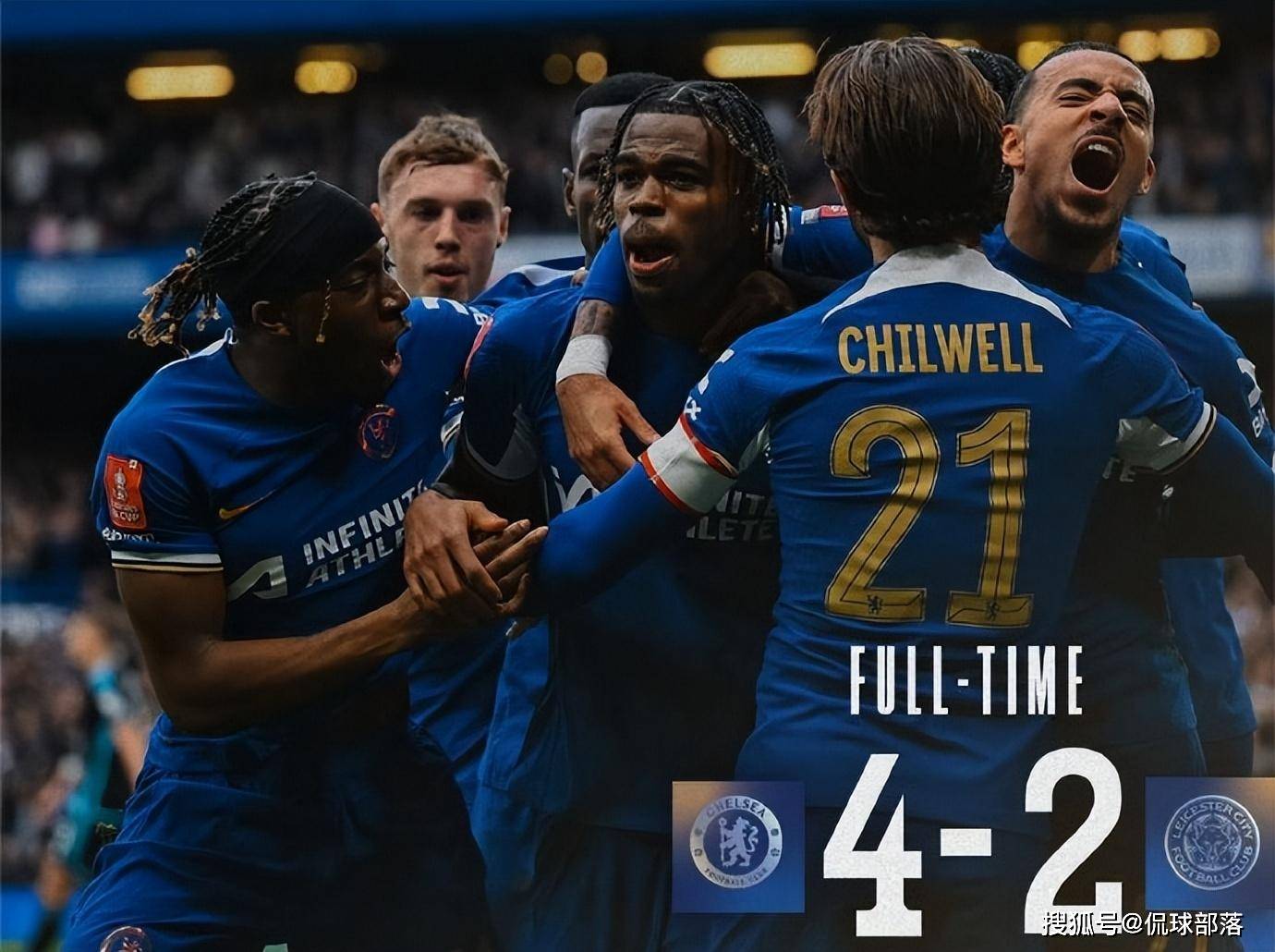下半场,迪萨西离谱自摆乌龙,随后马维迪迪兜射破门,帮助莱斯特城2-2扳平比分。关键时刻,帕尔默助攻楚克乌梅卡完成绝杀,随后不久马杜埃凯轰出世界波锁定胜局,帮助切尔西最终4-2淘汰莱斯特城。