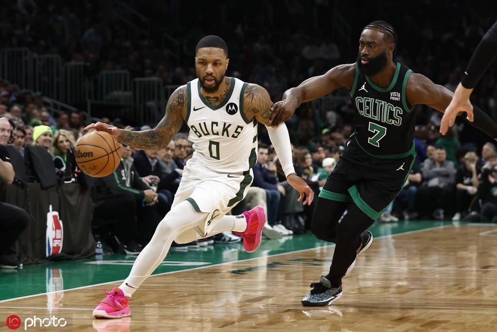 雄鹿队首发:达米安-利拉德、克里斯-米德尔顿、布鲁克-洛佩斯、杰-克劳德、马利克-比斯利
