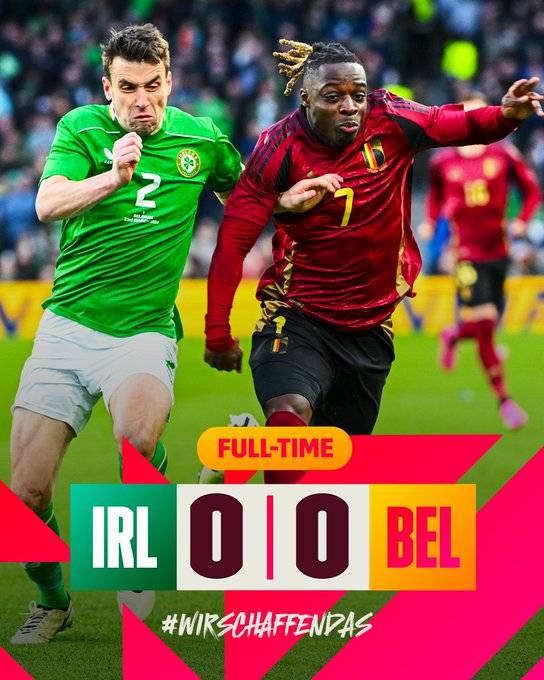 北京时间3月24日凌晨1时,比利时客场进行了与爱尔兰的友谊赛,第27分钟,埃文-弗格森失点,双方全场机会寥寥,共计仅3脚射正,最终,比利时0-0闷平爱尔兰。
