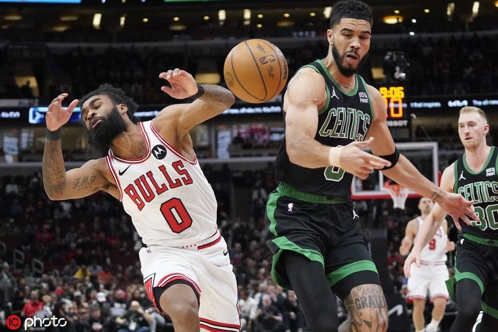 【搜狐体育战报】北京时间3月24日NBA常规赛,客场作战的波士顿凯尔特人以124-113击败芝加哥公牛,凯尔特人取得9连胜。塔图姆26分2篮板6助攻,怀特11分5篮板10助攻。