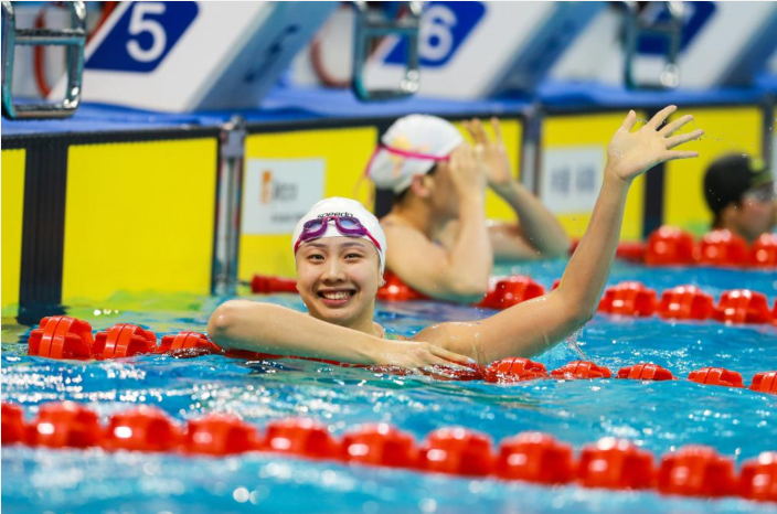 女子400米个人混合泳决赛中,余依婷以4分39秒60摘得金牌,于子迪和曲佳凝分别拿下银牌和铜牌。