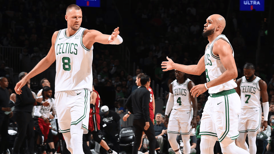 凯尔特人本赛季场均净胜对手11.3分,排名历史第5,他们是全联盟跳投命中率最高的球队,目前,他们总比分1-0领先热火。