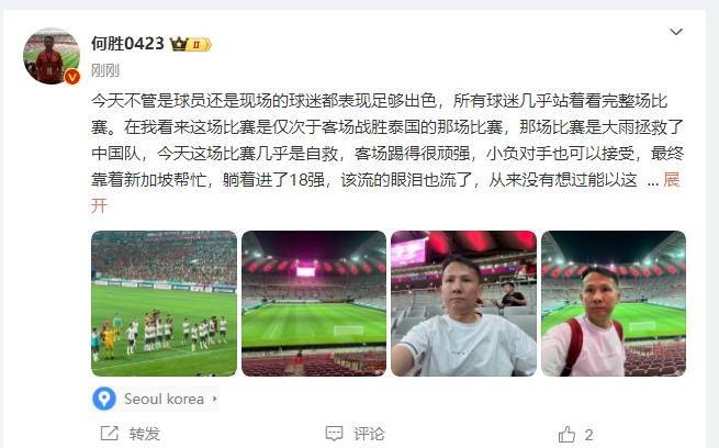 直播吧06月11日讯 国足晋级18强赛,赛后退钱哥何胜发文。