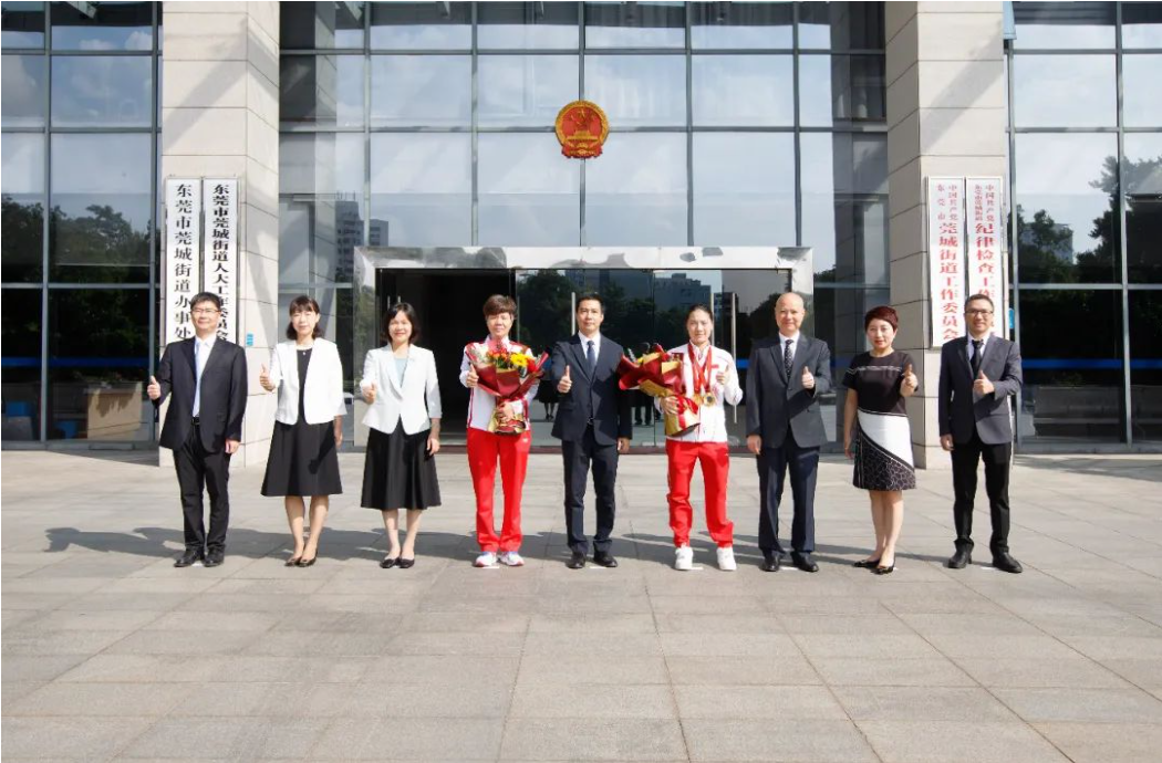 10月16日,莞城街道党工委书记陈钊,党工委副书记、办事处主任麦允谦会见了第17届夏季残奥会莞城运动员、教练员,并与大家交流并合影留念。党工委委员张永红也参加了会见活动。