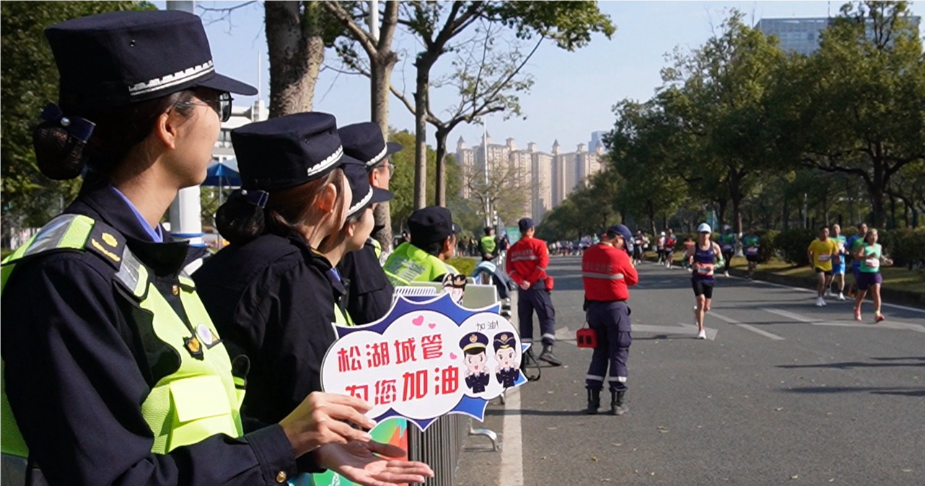 松山湖城管分局在赛前对赛道及沿线区域进行了彻底的环境提升工作。这包括清理垃圾杂物、冲洗道路、擦拭城市家具以及检修市政设施等一系列行动,有效提升了赛道的整体“颜值”。通过这些举措,城管分局不仅美化了赛道环境,还确保了赛事期间的设施安全和市容整洁。比赛当天清晨,松山湖城管分局的队员提前到位,对赛道沿线的市容秩序进行了再次巡查和优化,及时发现并解决了可能出现的问题。赛事开始后,城管队员在赛道周围进行巡查,指导市民有序观赛,并为运动员加油鼓劲。