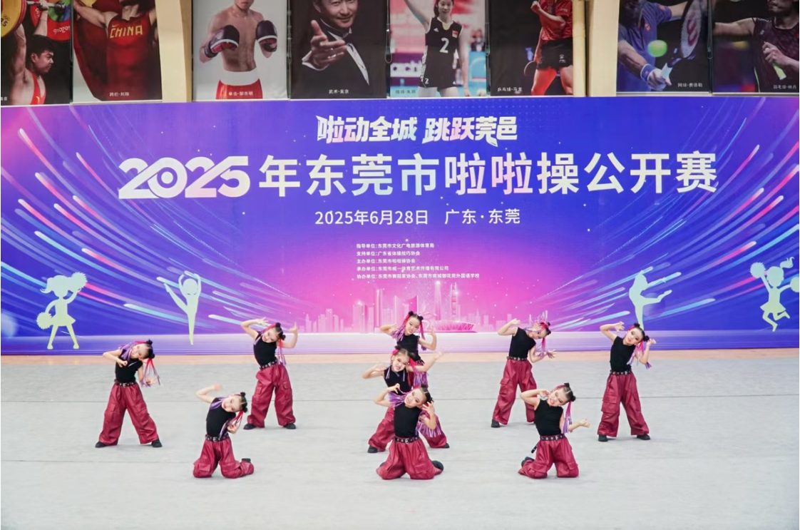 6月28日午后的南城御花苑外国语学校体育馆,四岁半的朵朵在候场区抓紧妈妈的手,镶满亮片的演出服随呼吸起伏。当《欢乐颂》旋律响起,这支平均年龄5岁的"糖果精灵"队摇摆登场——粉紫色花球划出稚嫩弧线,前排男孩踉跄却坚持完成侧手翻瞬间,观众席爆发的掌声掀起热浪首波。东莞市啦啦操公开赛在此拉开战幕,36支队伍五百余名选手以力与美点燃盛夏激情。