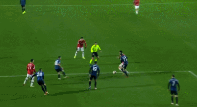 第91分钟,曼联在前场左侧得球,他连续横向带球,试图找到远射的机会,但未成功,球最后被破坏。幸运的是,亚特兰大没有将球解围出去,格林伍德抢到了球,他机警的将球挑给了C罗。此时,C罗正站在大禁区弧顶的左侧,离球门有一段距离,且身边有多达4个防守队员。