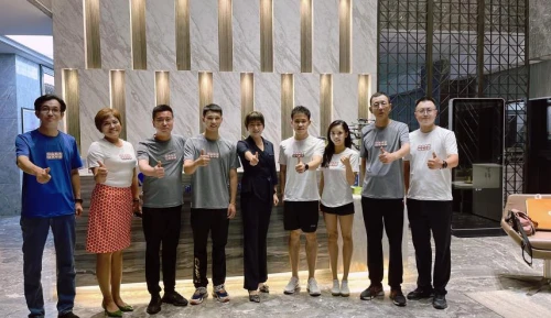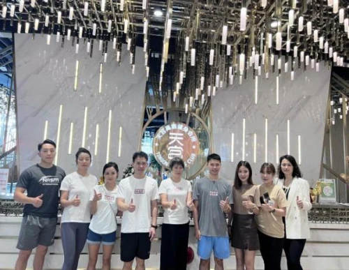 煌敏集团董事长陈旦煌、昢色POSE品牌创始人李敏,详细介绍了昢色POSE品牌的发展历程及未来规划,并带奥运冠军陈艾森、谢思埸参观打卡东莞地标篮球宝贝与高端天宫健身会所。