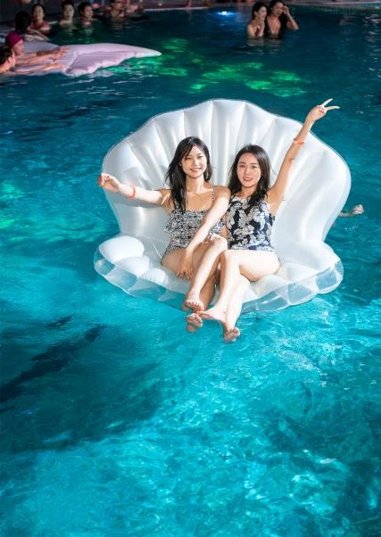 天色渐暗,灯光亮起。在专业老师的带领下,上演了一场水中尊巴。感受阻力和力量的快感,在欢笑中结交新伙伴,体验一场最凉爽、最Cool的夏日运动。