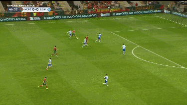 第47分钟,若塔前场断球后带球突进到禁区前,直塞给C罗,C罗在禁区内左侧的一次半单刀机会,一脚抽射,皮球被门将扑出。