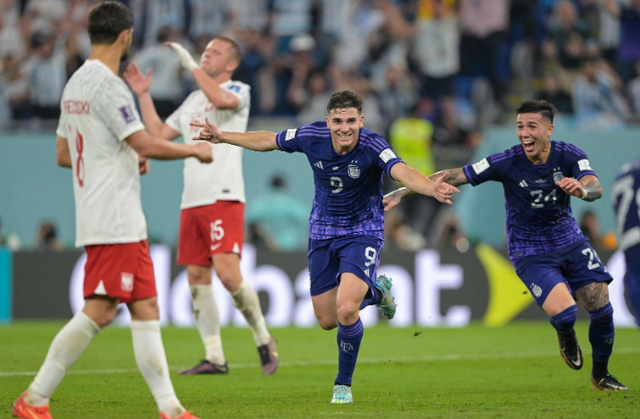 第70分钟,梅西推射再次被扑!第73分钟,阿尔瓦雷斯抽射击中边网。第78分钟,恩佐、阿尔瓦雷斯换下,佩泽拉、劳塔罗登场。第86分钟,波兰传球失误,劳塔罗单刀打偏。补时,梅西射门未果。最终阿根廷获胜。