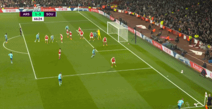第90分钟,热苏斯回传,内尔森推射被门将扑出,萨卡补射破门,3-3,阿森纳追平比分。