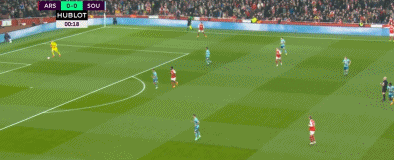 第46分钟,维埃拉左路传中,加布里埃尔头球射高。一分钟后,萨卡右路直传,热苏斯禁区右侧小角度推射,门将把球扑出,萨卡开出角球,本-怀特头球攻门,阿尔卡拉斯在门前把球解围。半场战罢,阿森纳1-2落后圣徒。