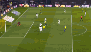 第20分钟,C罗接队友弧顶挑传,禁区右侧头球摆渡到中间,塔利斯卡跟进头球冲顶顶高。