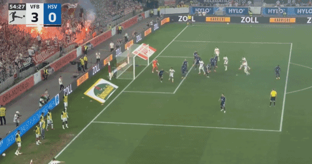 第54分钟,索萨角球传中送到门前,塞罗-吉拉西将功补过,力压汉堡后卫甩头建功,斯图加特已经3-0遥遥领先。
