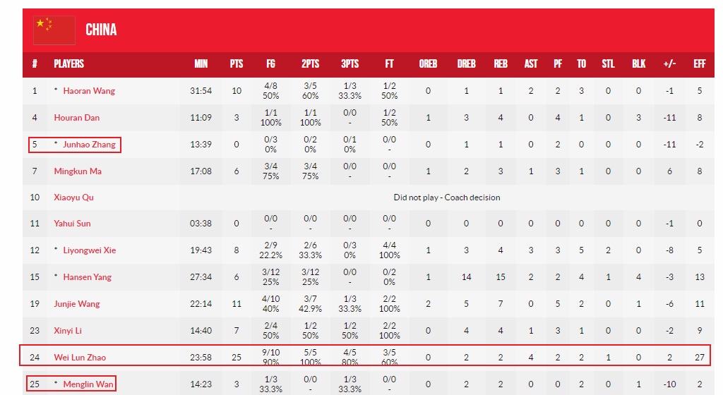 两位首发后卫张峻豪和万孟霖又是状态低迷。首发控卫张峻豪一分未得,万孟霖只在垃圾时间投进一记三分球。而在第一场比赛,张峻豪只得到3分,万孟霖一分未得。也就是说两场比赛,国青男篮的两位首发后卫竟然总共才得到6分。