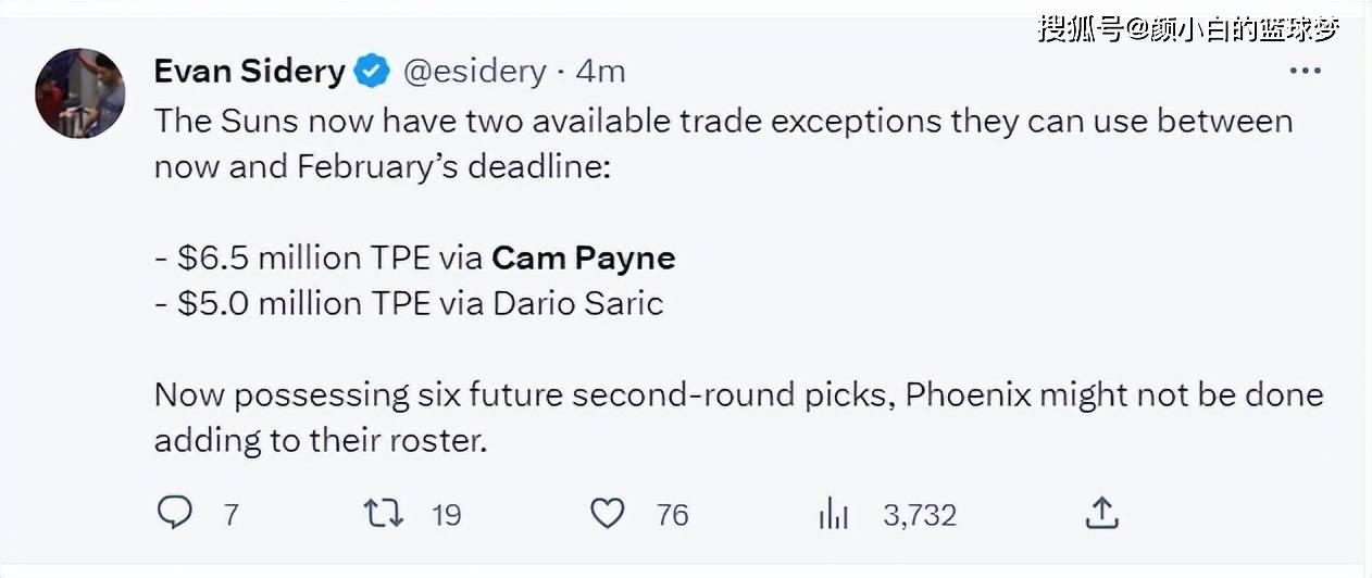 太阳将佩恩送到马刺获得了一个价值650万的交易特例,此前交易萨里奇还剩一个500万的交易特例,太阳未来还有6个次轮签。