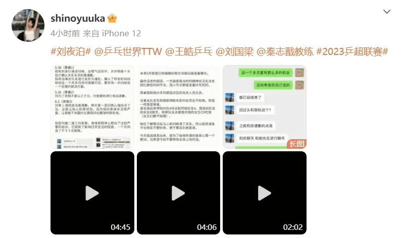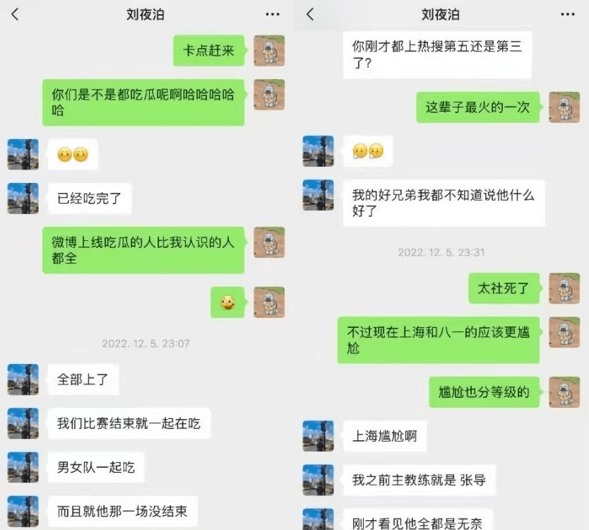 目前,刘夜泊代表深圳宝安俱乐部参加乒超联赛。在刚刚结束与山东鲁能队的较量中,刘夜泊与牛冠凯组成的男双,0:3输给了王楚钦和周启豪组合。男单比赛中,刘夜泊1:3不敌梁靖崑。值得一提的是,比赛现场,球迷通过社交媒体,得知刘夜泊出轨。球迷大喊刘夜泊上线“吃瓜”!而众多队友得知这个消息后,也在比赛期间上网吃瓜!